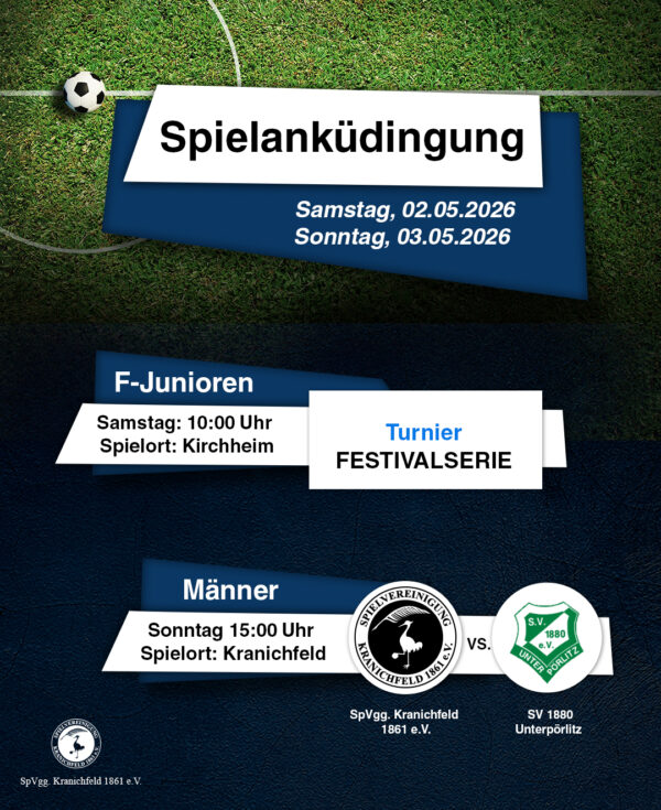 Vollgepacktes Programm bei der SpVgg 1861! Macht euch bereit für ein Wochenende voller Fußball-Leidenschaft. Von unseren Jüngsten bis zu den Männern – wir brauchen eure Unterstützung am Spielfeldrand! Samstag, 25.April E-Junioren (Heimspiel): Unsere Kids empfangen die Isserodaer SV. Anstoß… Weiterlesen →